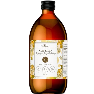 Gold Elixir Bovine Collagen contains premium hydrolysed bovine collagen types I & III, making it one of the most effective liquid collagen drinks UK. Compared to collagen capsules, collagen tablets, or collagen powders, this high-strength bovine collagen supplement delivers visible anti-ageing results for skin, hair, nails, and joint health.