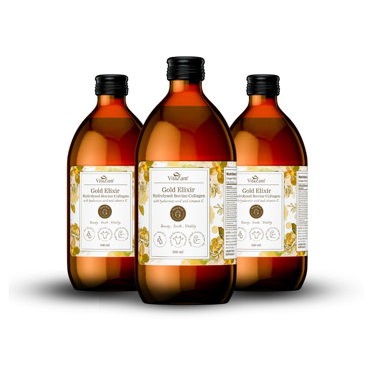 CLINICALLY TESTED FOR RESULTS: Powered by scientifically proven ingredients, Vitazam Gold Elixir Collagen offers a bioavailable collagen formula in a ready-to-drink 500ml bottle, specifically developed for fast nutrient absorption and maximum efficacy. This liquid collagen supplement for skin, joints, and hair delivers results that you’ll feel from within and see in your mirror within 8 weeks.