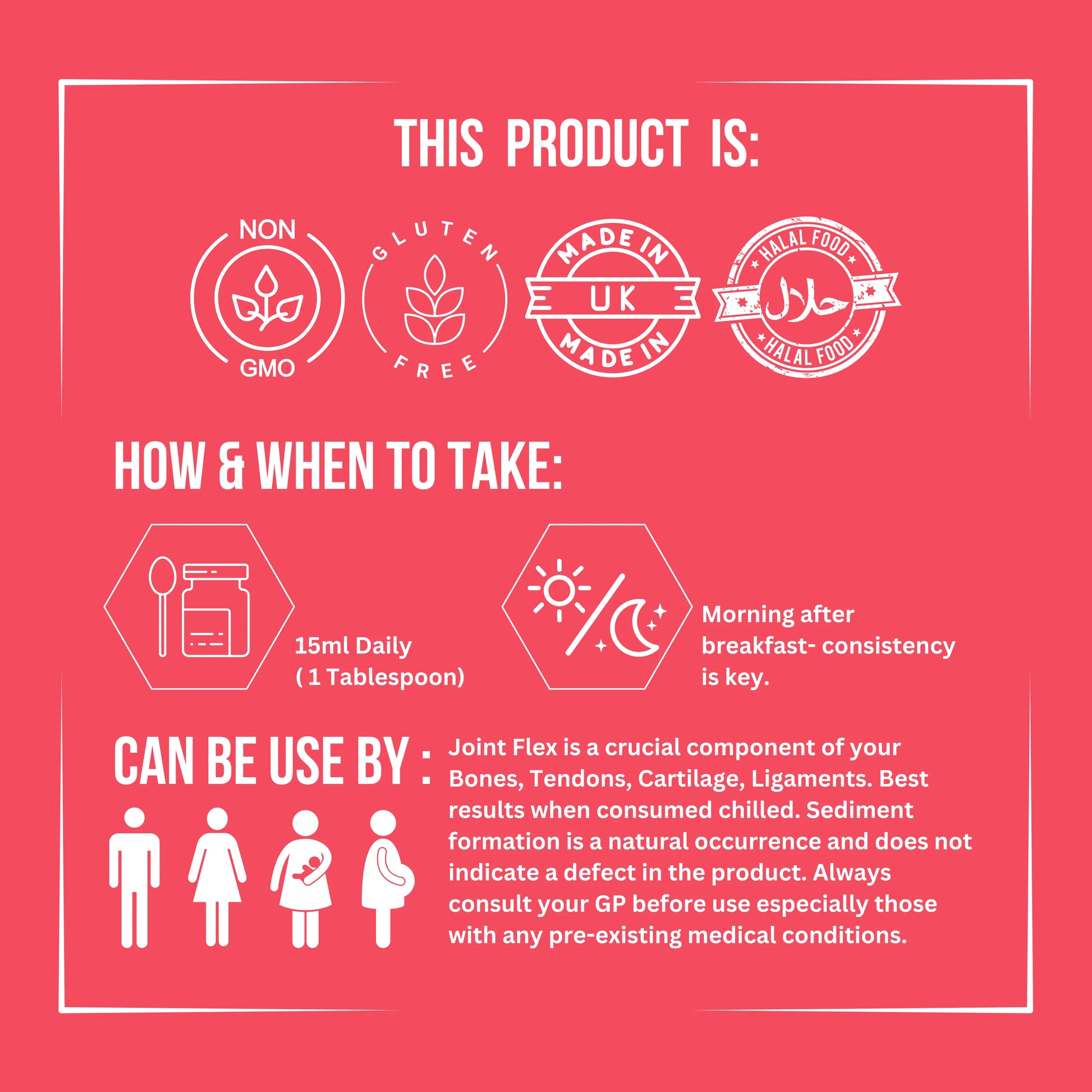 The best way to take Joint Flex liquid glucosamine & chondroitin is in its fast-absorbing liquid form, which works quicker than tablets or powders. Each serving is designed to support joint mobility, cartilage repair, and flexibility while reducing stiffness and discomfort. Unlike capsules, our liquid joint supplement UK delivers maximum bioavailability for faster results.